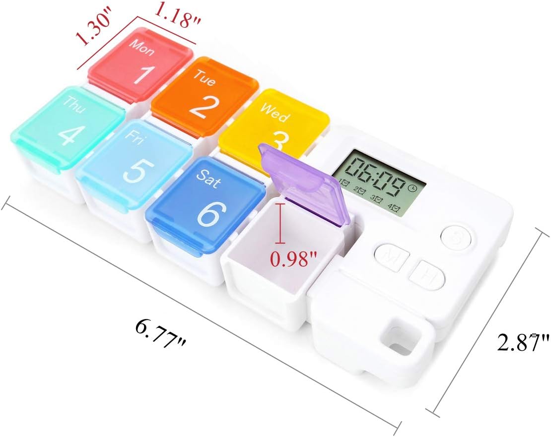 Experience total peace of mind and manage medication like a pro with this Loravian® 7 Days Pill Dispenser Organizer! An ultimate health helper designed with a built-in digital timer that alerts you exactly when it's time to take your pills.